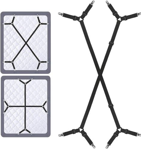 Navani Bed Sheet Clips For Bedding | Fitted Bed Sheet Straps Clips Holder | Bed Sheet Grippers Suspenders | Bed Scrunchie UK | Bed Sheet Fasteners Grippers | Mattress Sheet Clips Straps | 2pcs Black